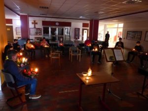 Einstimmung auf den Advent mit Abstand: Die Klassensprecher hatten die Adventskränze zur Segnung in die Aula gebracht.