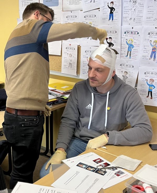 Besonders sensibilisiert wurden die Lehrkräfte für die Versorgung von Wunden, Prellungen oder Knochenbrüchen, wie sie im Schulalltag, etwa in den Pausen oder im Sportunterricht, gelegentlich auftreten. Auch der Umgang mit bewusstlosen oder verunfallten Jugendlichen wurde intensiv trainiert.