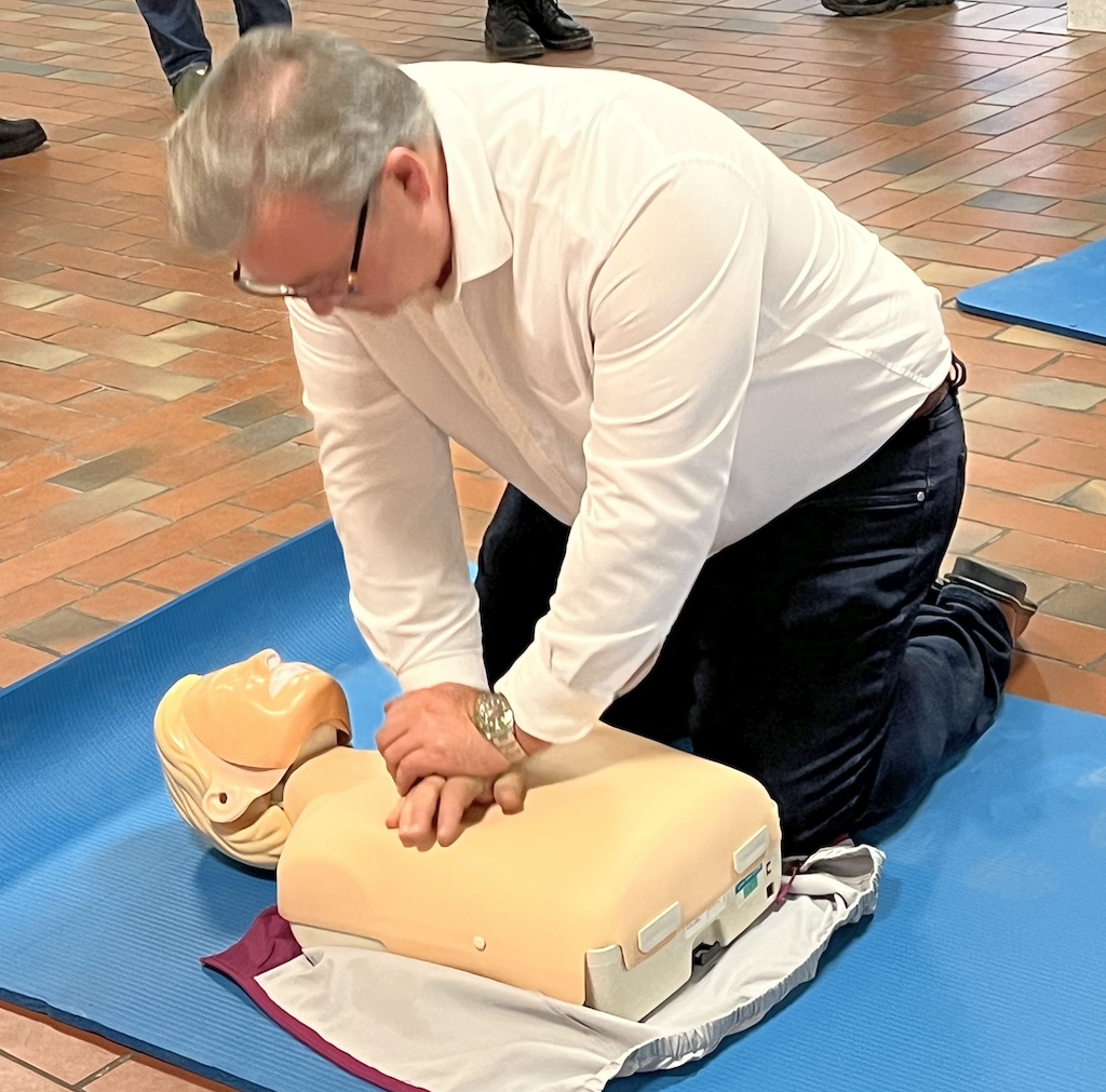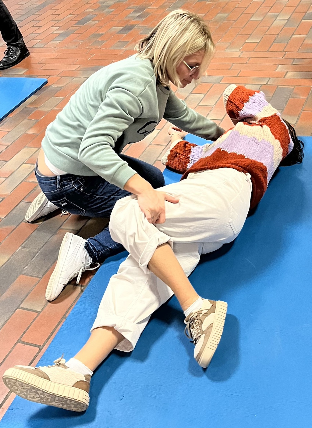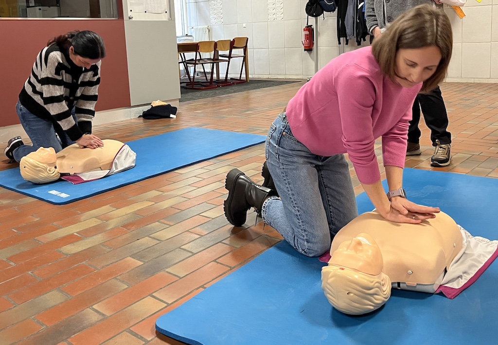 Ein praktischer Teil widmete sich außerdem dem Erkennen von Schlaganfall- und Herzinfarktzeichen, da diese nicht nur Erwachsene, sondern in seltenen Fällen auch jüngere Menschen betreffen können. Die Lehrkräfte lernten, wie wichtig es ist, Symptome frühzeitig zu erkennen und ohne zu zögern professionelle Hilfe anzufordern.